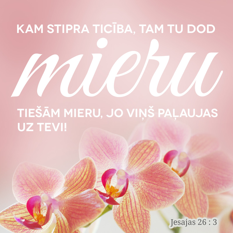 “Kam stipra ticība, tam Tu dod mieru, tiešām mieru, jo viņš paļaujas uz Tevi! Paļaujieties uz To Kungu vienumēr, jo Dievs Tas Kungs jums ir mūžīga klints!” /Bībele, Jesajas 26:3-4/